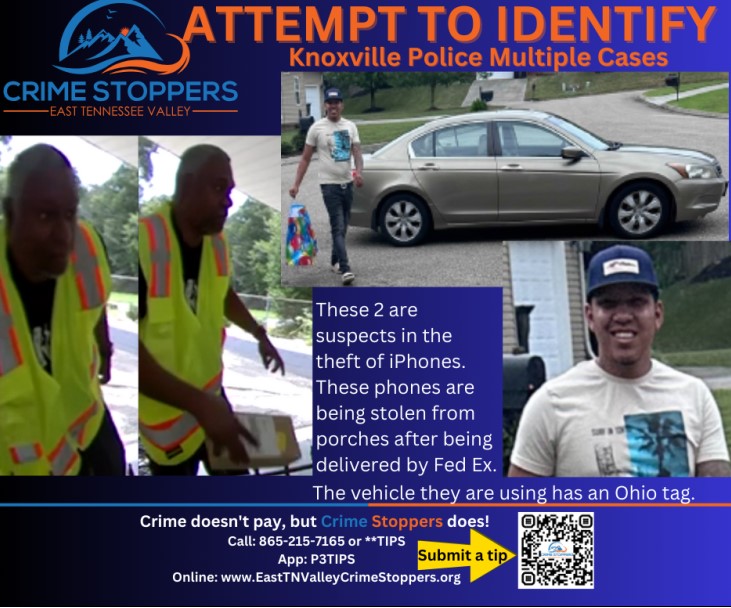 Knoxville Police detectives are investigating a string of thefts where iPhones have been stolen after being delivered by Fed-Ex. The suspects have been driving a beige 2008 Honda Accord with Ohio tags.